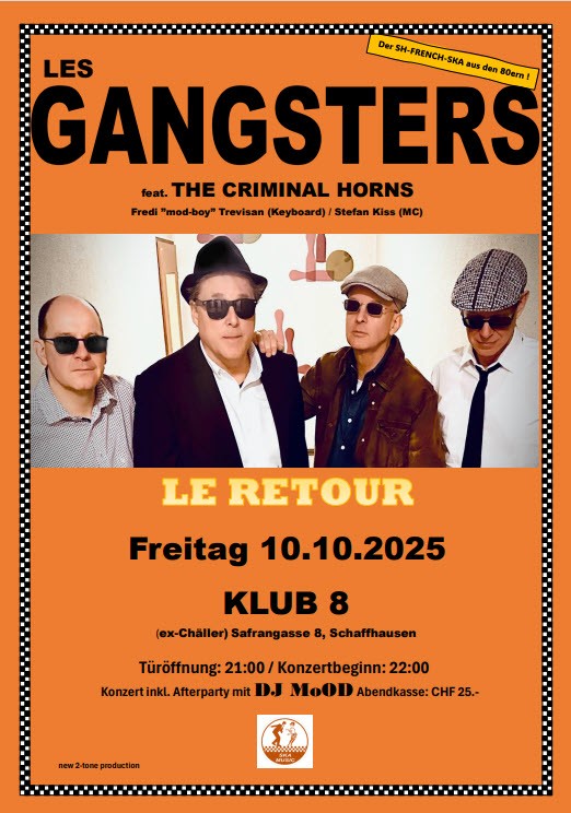Nach fast vier Jahrzehntenn die «Ganoven» mit ihrem energiegeladenen French-Ska zurück: Am 10.10. feiern sie ihr Comeback im KLUB 8 an der Safrangasse in Schaffhausen.