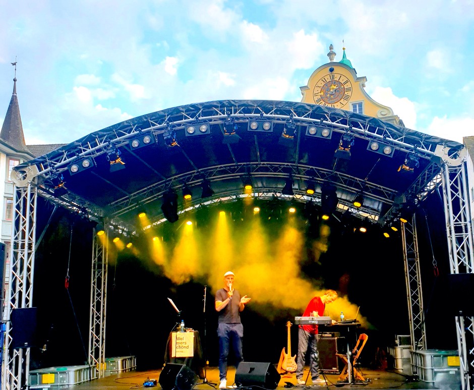Die zwei Exil-Schaffhauser Jürg «Odi» Odermatt (Papst & Abstinenzler, Boomtown) und Martin «Fisch» Fischer (Der böse Bub Eugen, Disco Doom, Nadja Zela, P&A) haben sich im elektronischen Duo Ahh wa! kurzgeschlossen und im Sommer 2022 ihr Debütalbum «Mir trülled im Chreis» veröffentlicht.